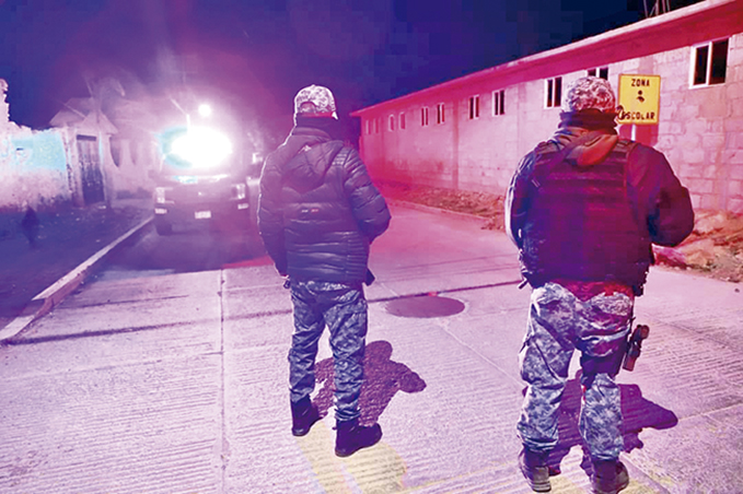 Operativo entre elementos de Seguridad Pública, así como de la Guardia Nacional, en la cabecera municipal
