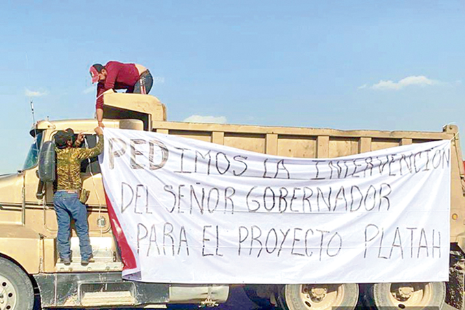 Un grupo de transportistas bloquearon la carretera México-Pachuca, para exigir sean tomados en cuenta en las obras que se realizan en el complejo “Platah”, donde de acuerdo con los manifestantes la contratación de otras constructoras les afecta económicamente.