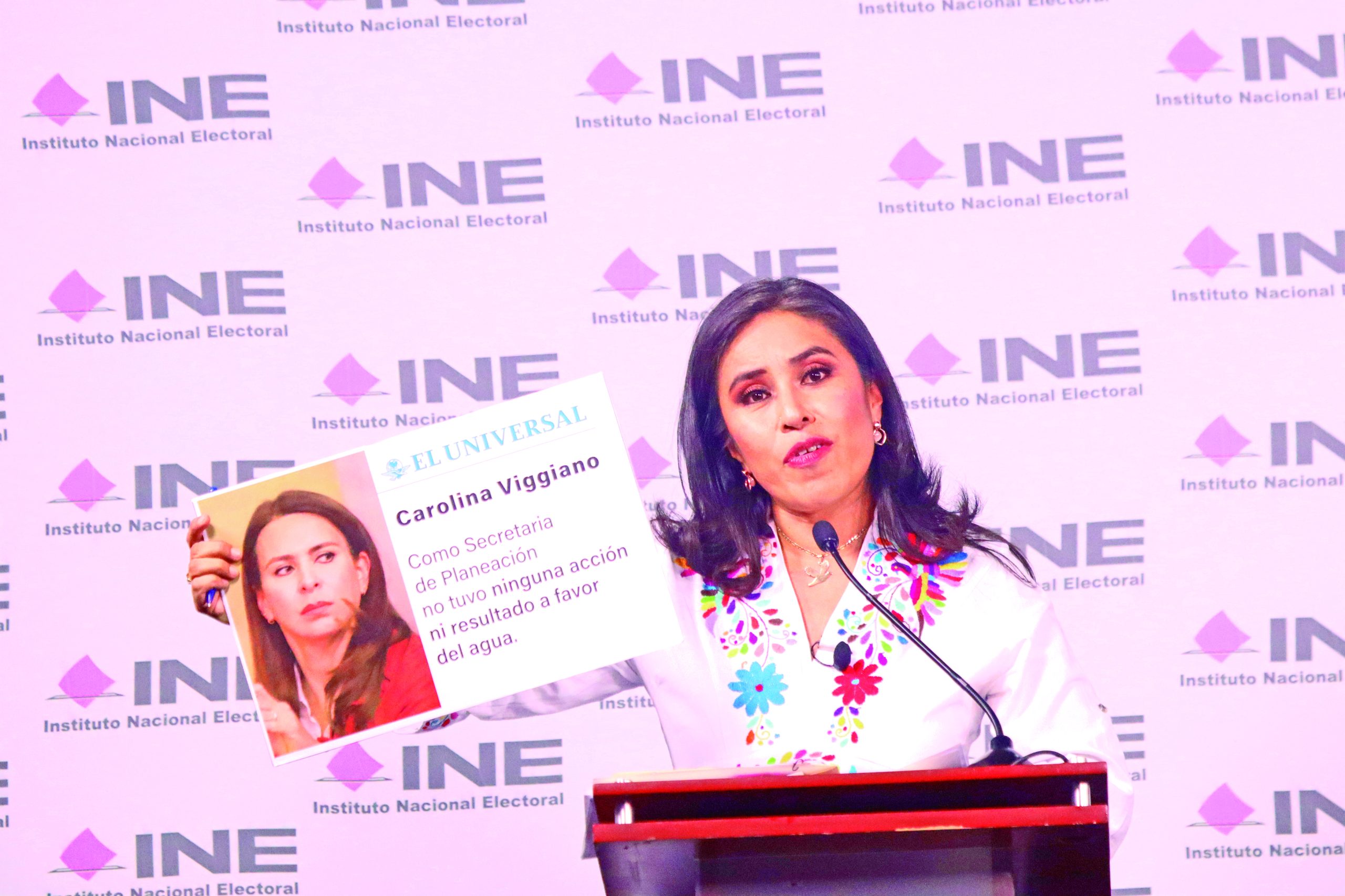 Adriana Flores distribuyó sus tiempos para reprochar a Carolina Viggiano, llamándola “candidata de la vieja política”, y también al contendiente petista a quien le denominó “líder del clan Sosa”.