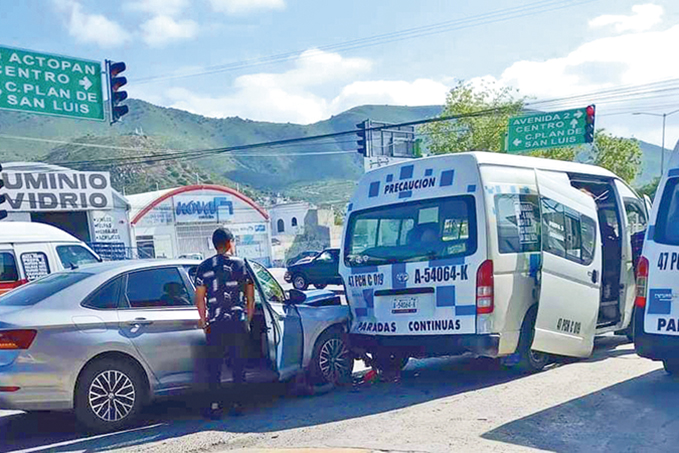De acuerdo con la Policía Municipal, dicho percance se presentó a la altura de la colonia Plutarco Elías Calles, donde una Urvan, de la ruta 47, y un vehículo particular se vieron involucrados. No reportaron personas lesionadas, sólo daños materiales en las unidades.