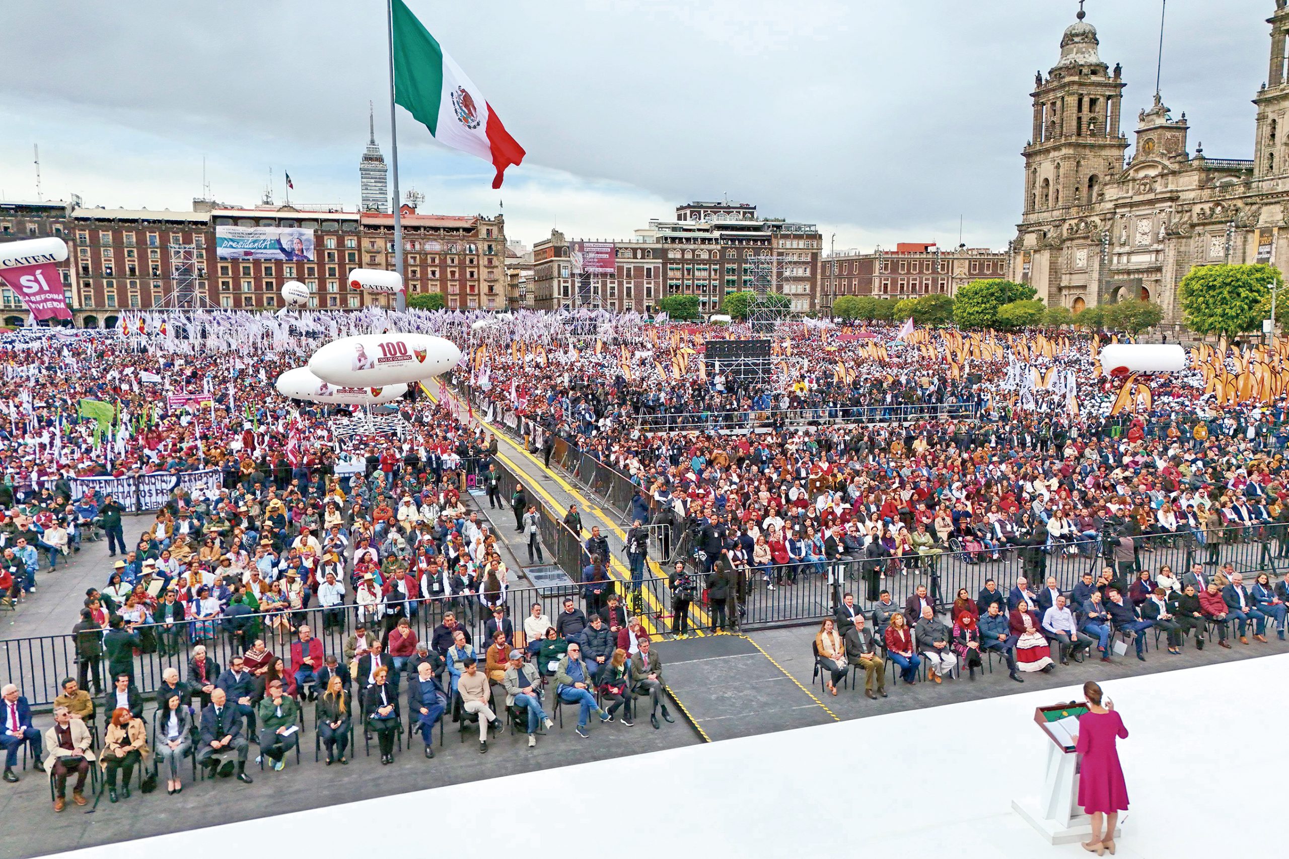El zócalo de la Ciudad de México fue el escenario de la presentación del balance de los primeros 100 días del llamado Segundo Piso de la Cuarta Transformación, que encabeza la presidenta Claudia Sheinbaum Pardo.
