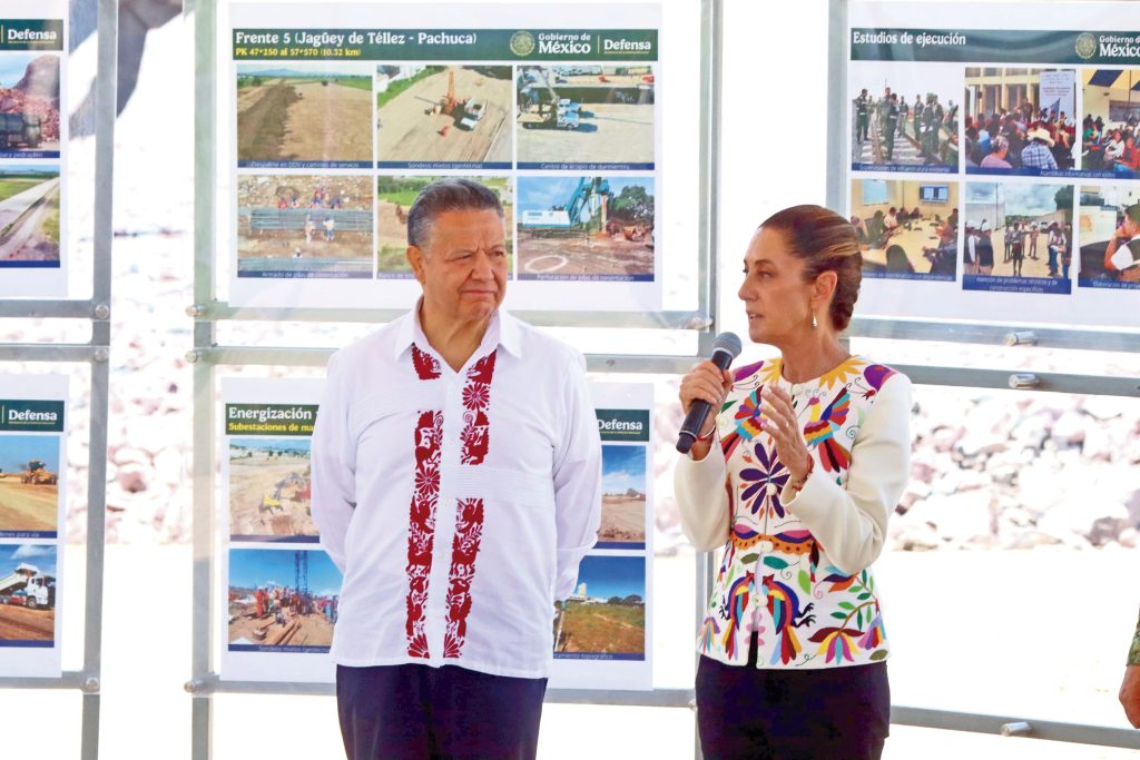 Acompañada por el gobernador, Julio Menchaca Salazar, el comandante del Agrupamiento de Ingenieros Felipe Ángeles, Gustavo Ricardo Vallejo Suárez; Andrés Lajous Loaeza, titular de la Agencia Reguladora del Transporte Ferroviario (ARTF) y autoridades federales, supervisaron los avances del proyecto, particularmente en el tramo de Zempoala y Villa de Tezontepec.