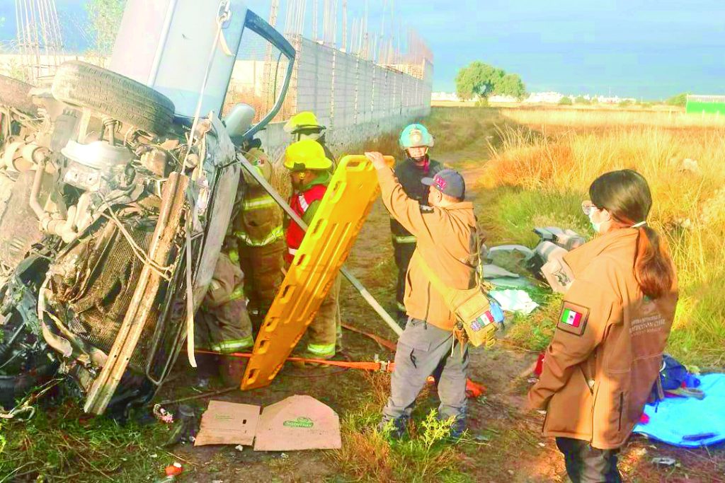De acuerdo al reporte de elementos de Bomberos Voluntarios del Estado de Hidalgo, al arribar como primeros respondientes al sitio de los hechos, identificaron que en el interior de la unidad volcada se encontraban dos personas prensadas debido al fuerte impacto que prácticamente destrozó la parte frontal de la camioneta.